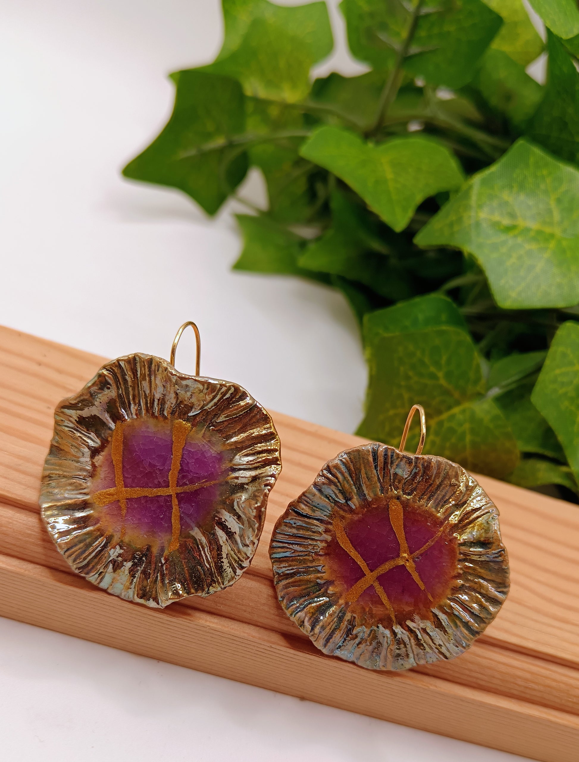 Bellissimi orecchini in ceramica Raku.
