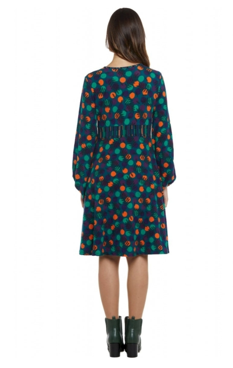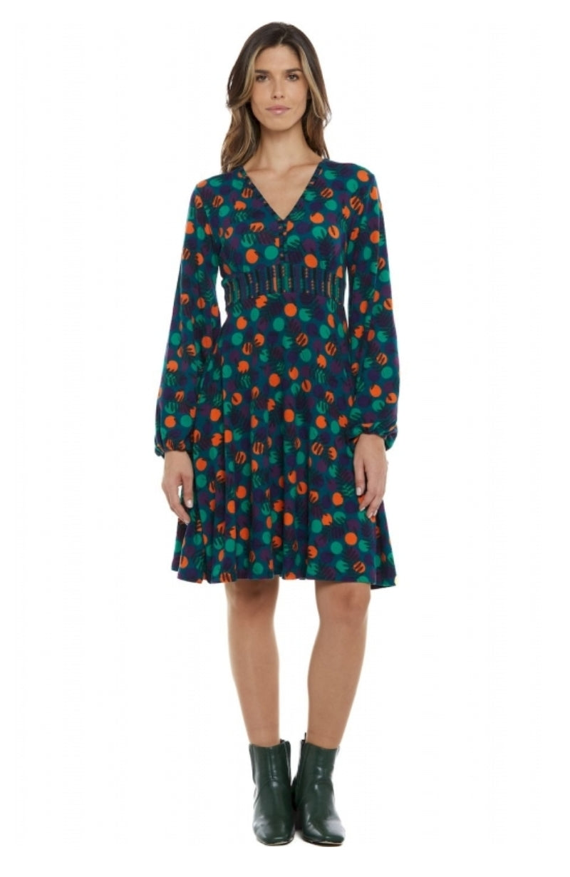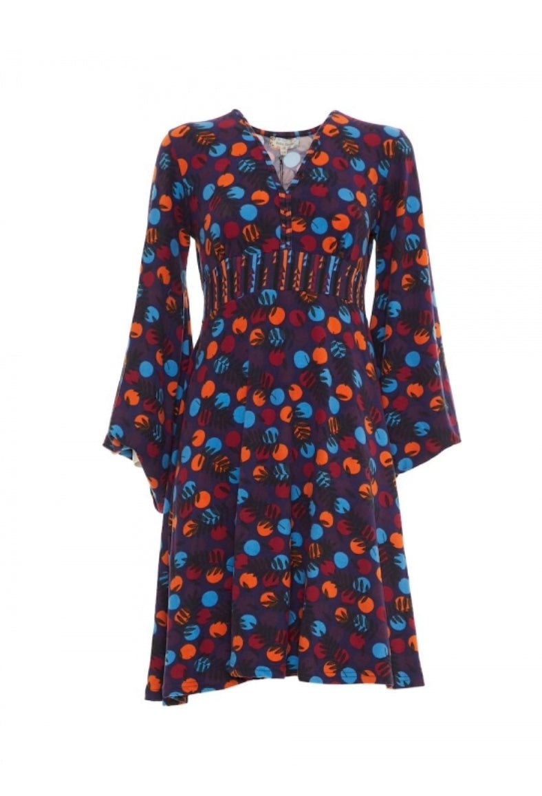 Bellissimo vestito fantasia con maniche con elastico sul polso.